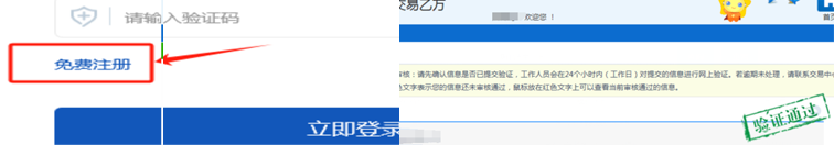 第一步,请先在一体化平台库中点击免费注册、完善单位或个人基本信息并上传相关资质直到验证通过,注册请点击下链接字进入注册界面