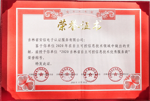 2020年12月18日,吉林省自主可控数字化推进大会在长春举行。安信CA受邀参加本次大会,并获得“2020吉林省自主可控信息技术优秀服务商”的荣誉称号。