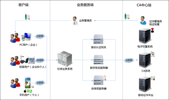 随着互联网和计算机技术的快速发展,各地社保局均已纷纷开展网上缴纳社会保险,网上缴纳社会保险,极大地方便了社会企业及公众,同时也提高了社保局的办事效率及政府机关职能形象;但与此同时,也引出了一系列安全风险,比如在互联网上如何有效的认定缴纳企业的身份?有无强有力的第三方认证手段?数据在互联网上传输是否安全?缴纳企业的行为是否能够有效追溯?解决这些安全风险问题是更好的开展互联网在线缴纳社会保险的服务保障前提。