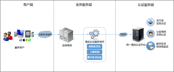 身份真实性校验服务包括多因子认证和实名认证两部分功能,多因子认证是指提供多种认证方式服务,应用系统使用该服务的效果即可以实现多种方式登录系统,例如:用户名/口令、手机/验证码、QQ/微信、淘宝/支付宝、身份证/密码、人脸识别等等。而实名认证则是根据用户提交的信息和已对接的实名渠道完善实名数据,实现多因子的身份认证方式。